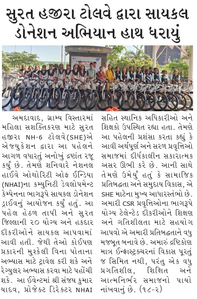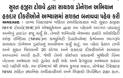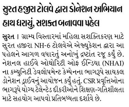 સુરત હજીરા ટોલવે દ્વારા સાયકલ ડોનેશન અભિયાન હાથ ધરાયું