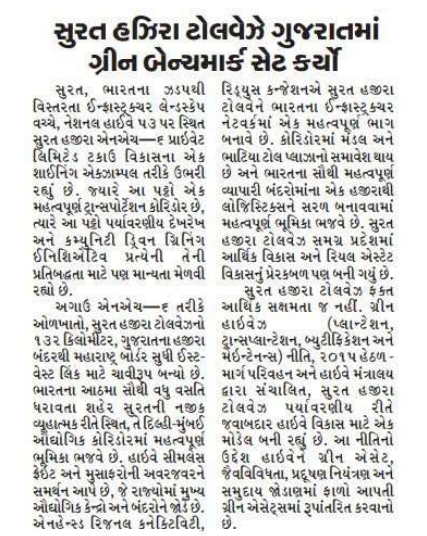 સુરત હઝિરા ટોલવેઝે ગુજરાતમાં ગ્રીન બેન્ચમાર્ક સેટ કર્યો