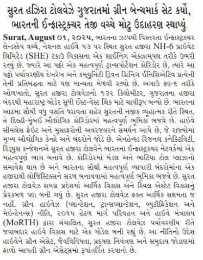 ભારતની ઈન્ફ્રાસ્ટ્રક્ચર તેજી વચ્ચે મોટું ઉદાહરણ સ્થાપ્યું સુરત હઝીરા ટોલવેઝે ગુજરાતમાં ગ્રીન બેન્ચમાર્ક સેટ કર્યો